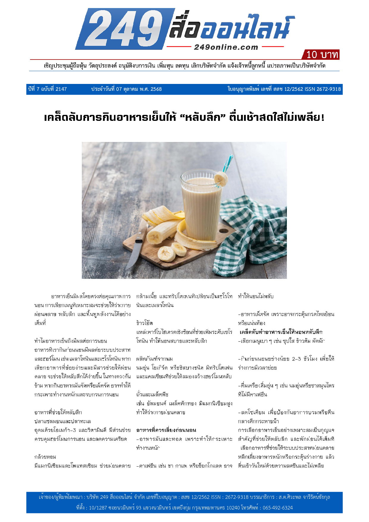 หนังสือพิมพ์ 249 สื่อออนไลน์ ได้จดแจ้งการพิมพ์อย่างถูกต้อง และได้รับใบอนุญาตเลขที่ สสช 12/2562 ISSN 2672-9318