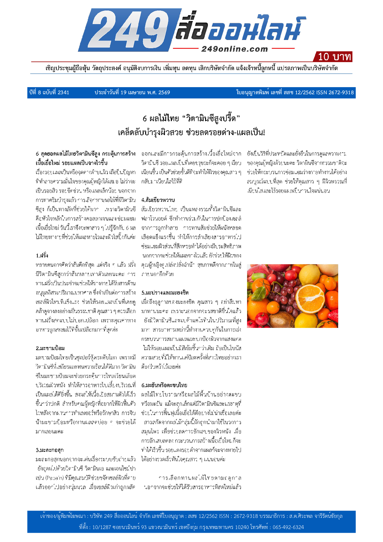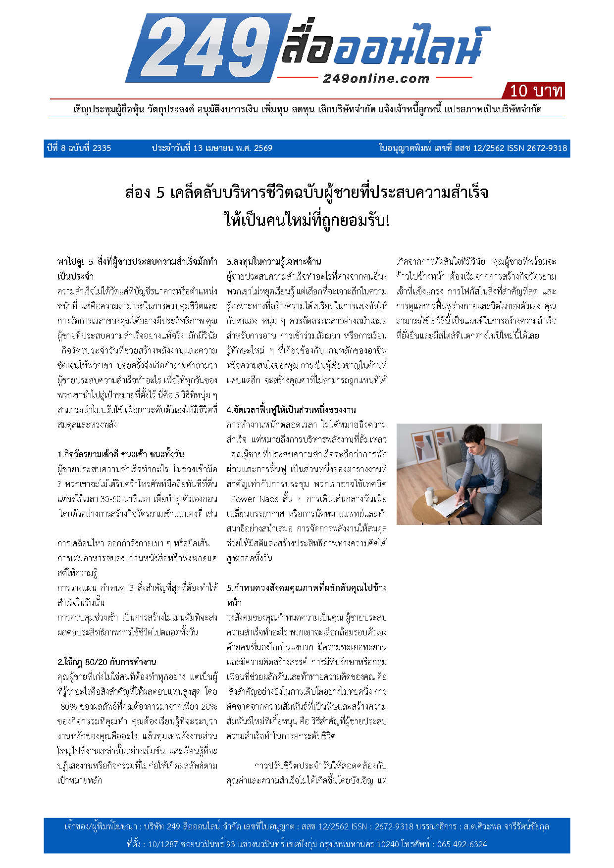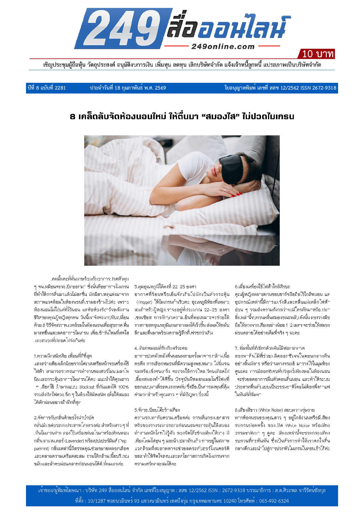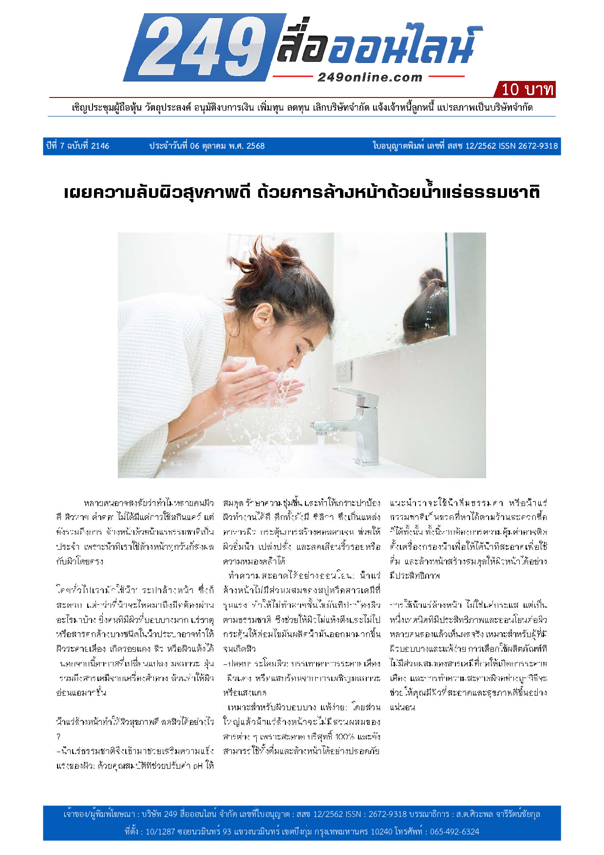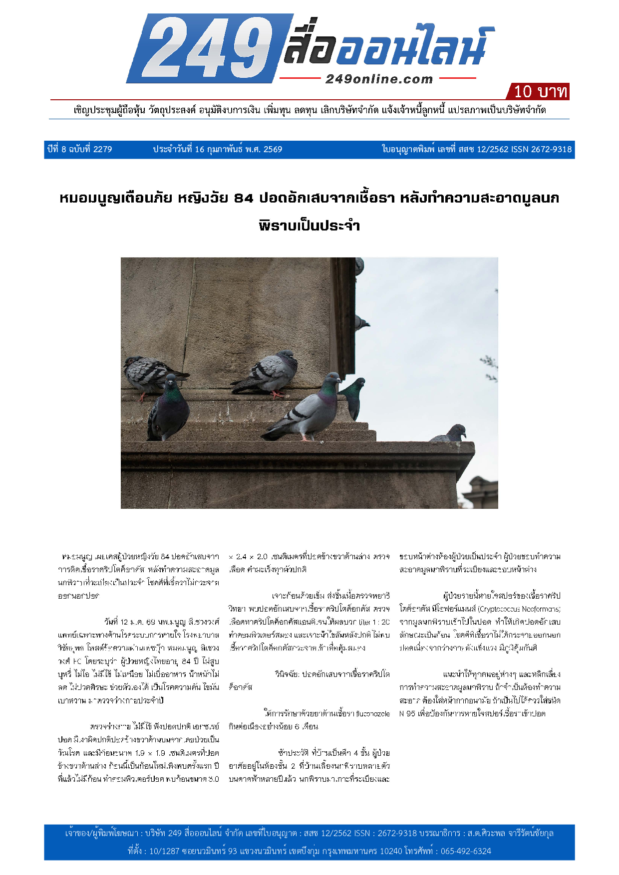 หนังสือพิมพ์ 249 สื่อออนไลน์ ได้จดแจ้งการพิมพ์อย่างถูกต้อง และได้รับใบอนุญาตเลขที่ สสช 12/2562 ISSN 2672-9318