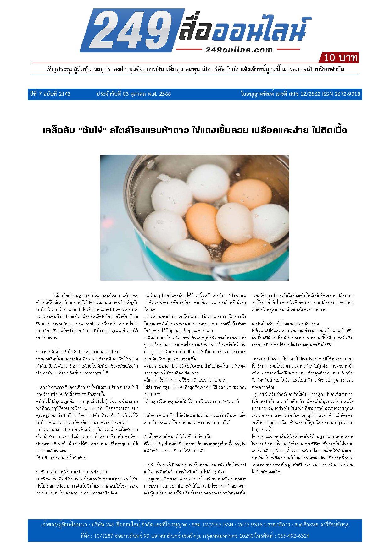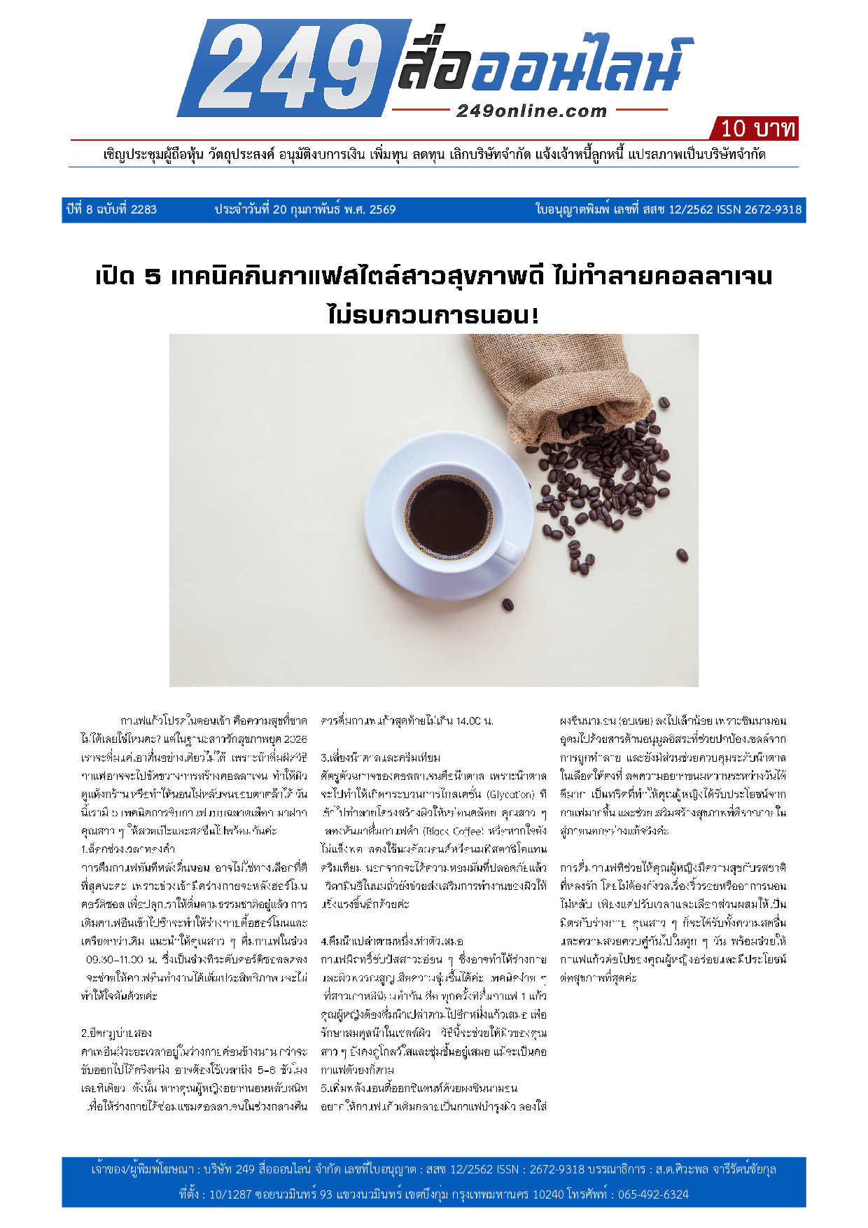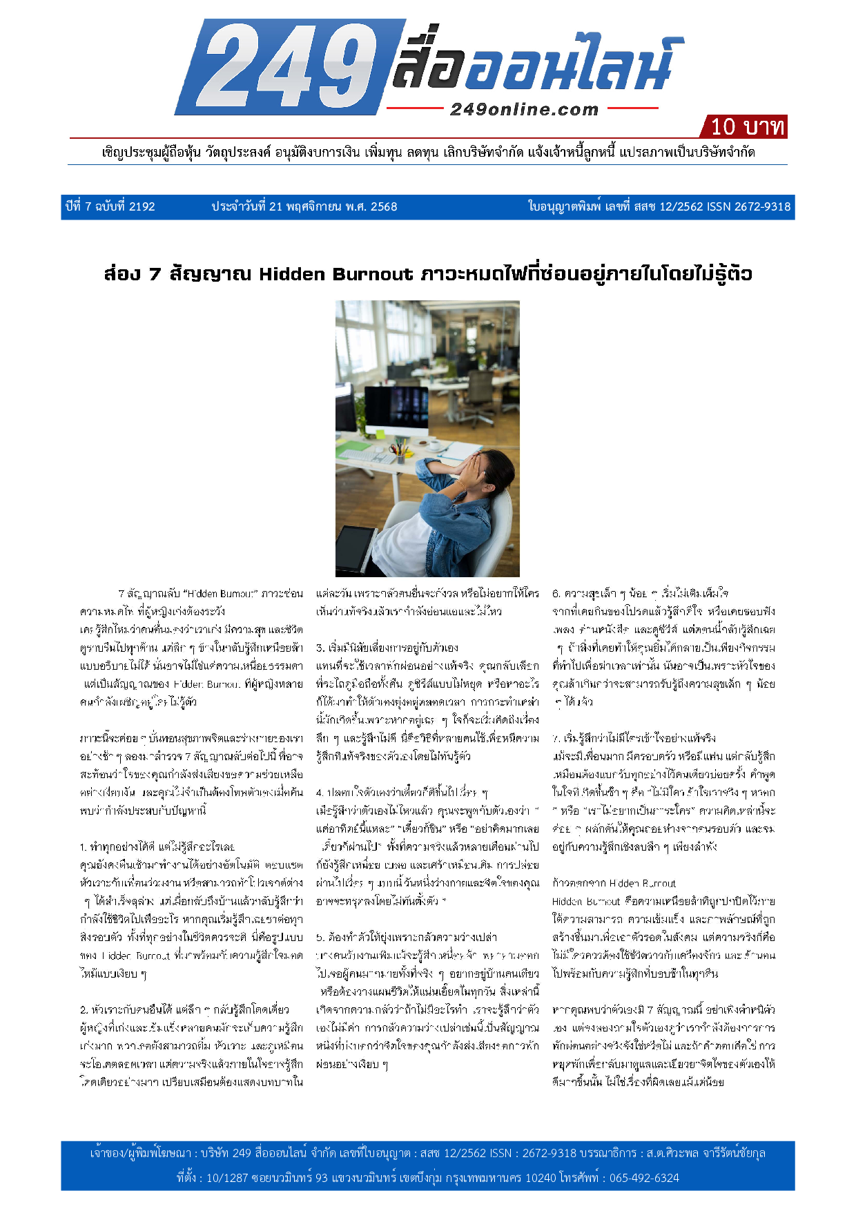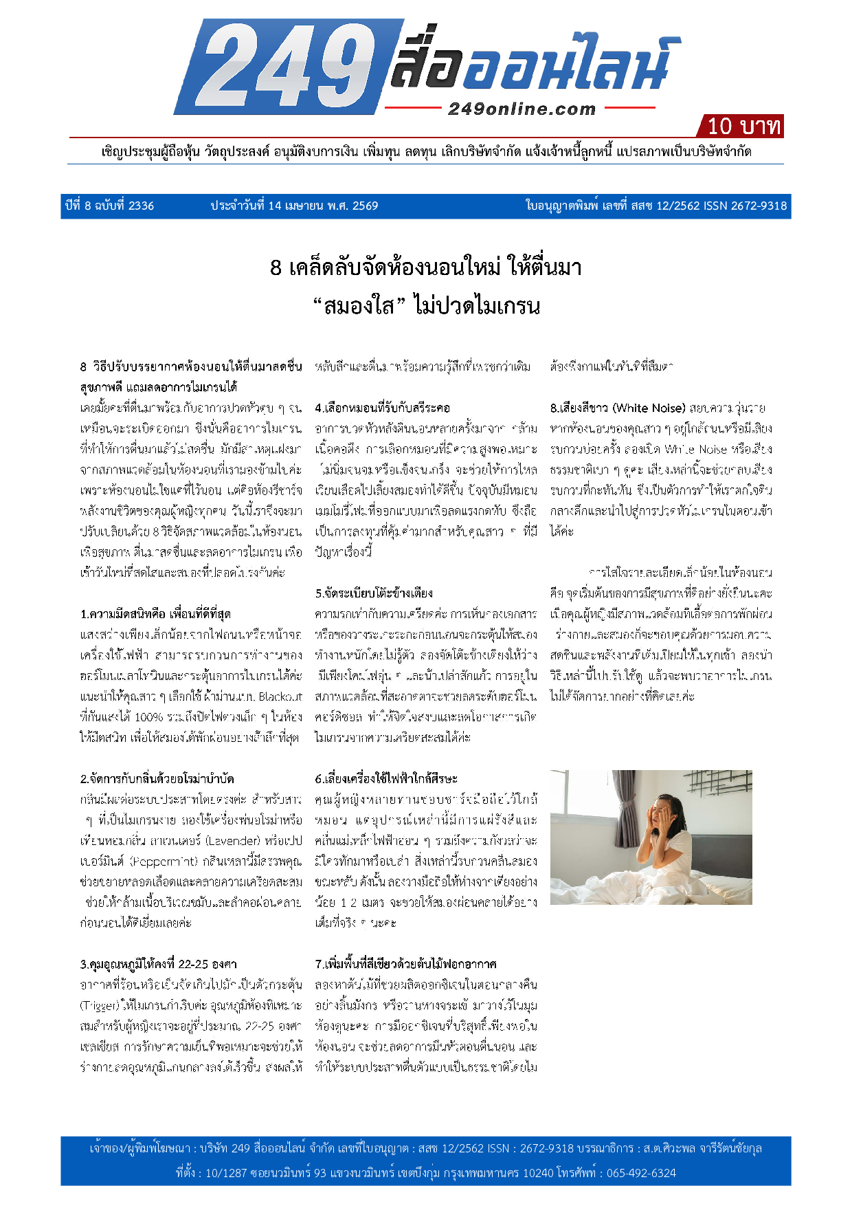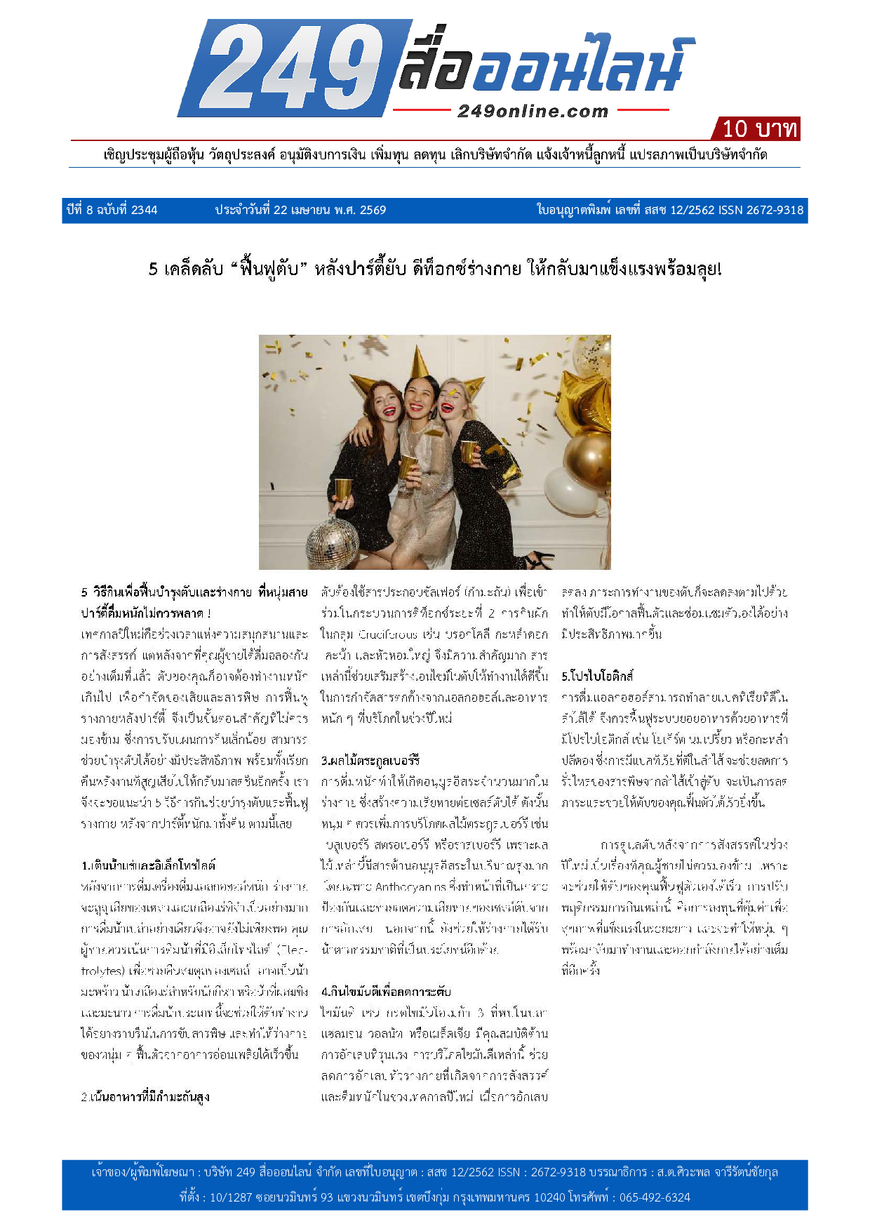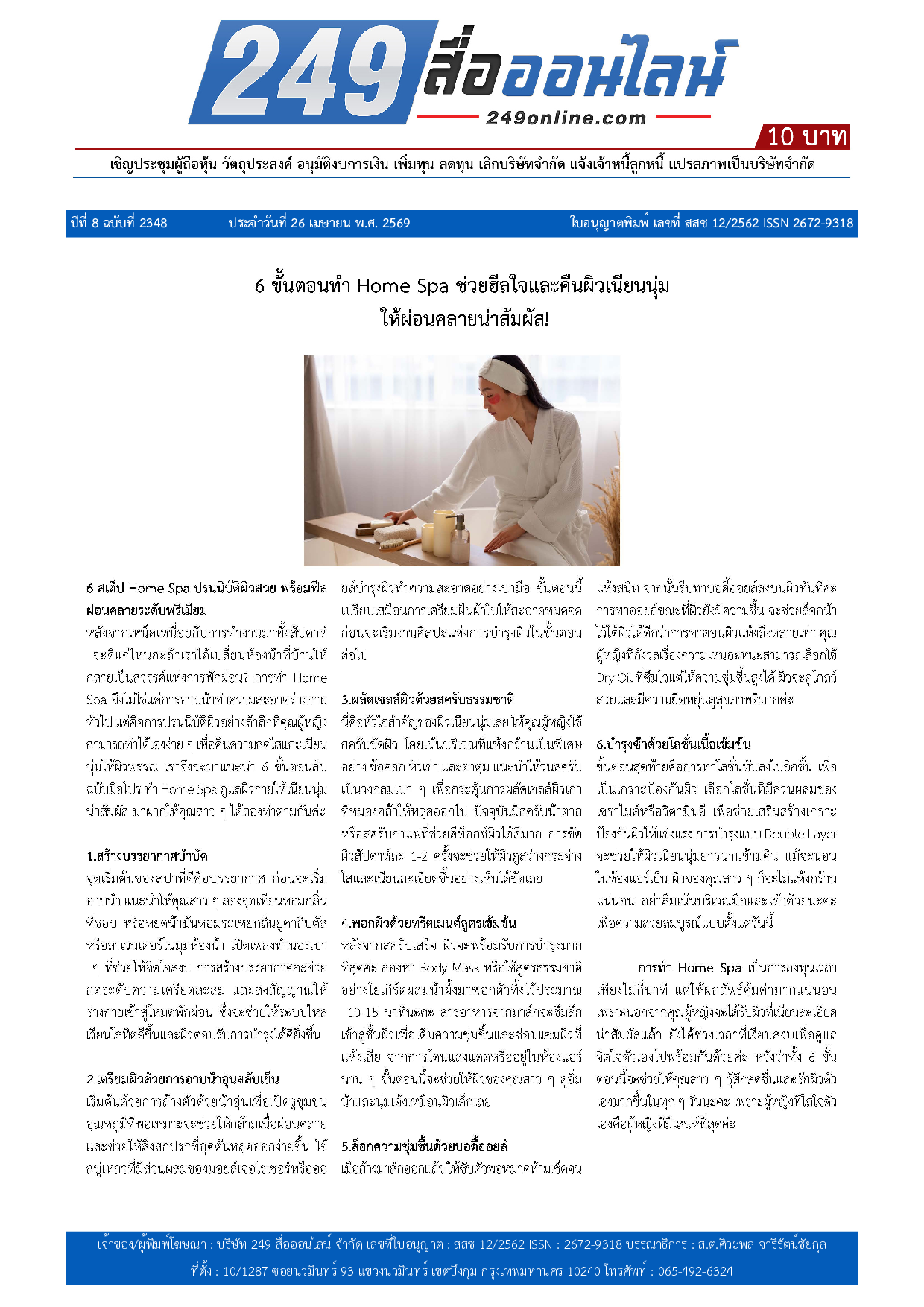 หนังสือพิมพ์ 249 สื่อออนไลน์ ได้จดแจ้งการพิมพ์อย่างถูกต้อง และได้รับใบอนุญาตเลขที่ สสช 12/2562 ISSN 2672-9318