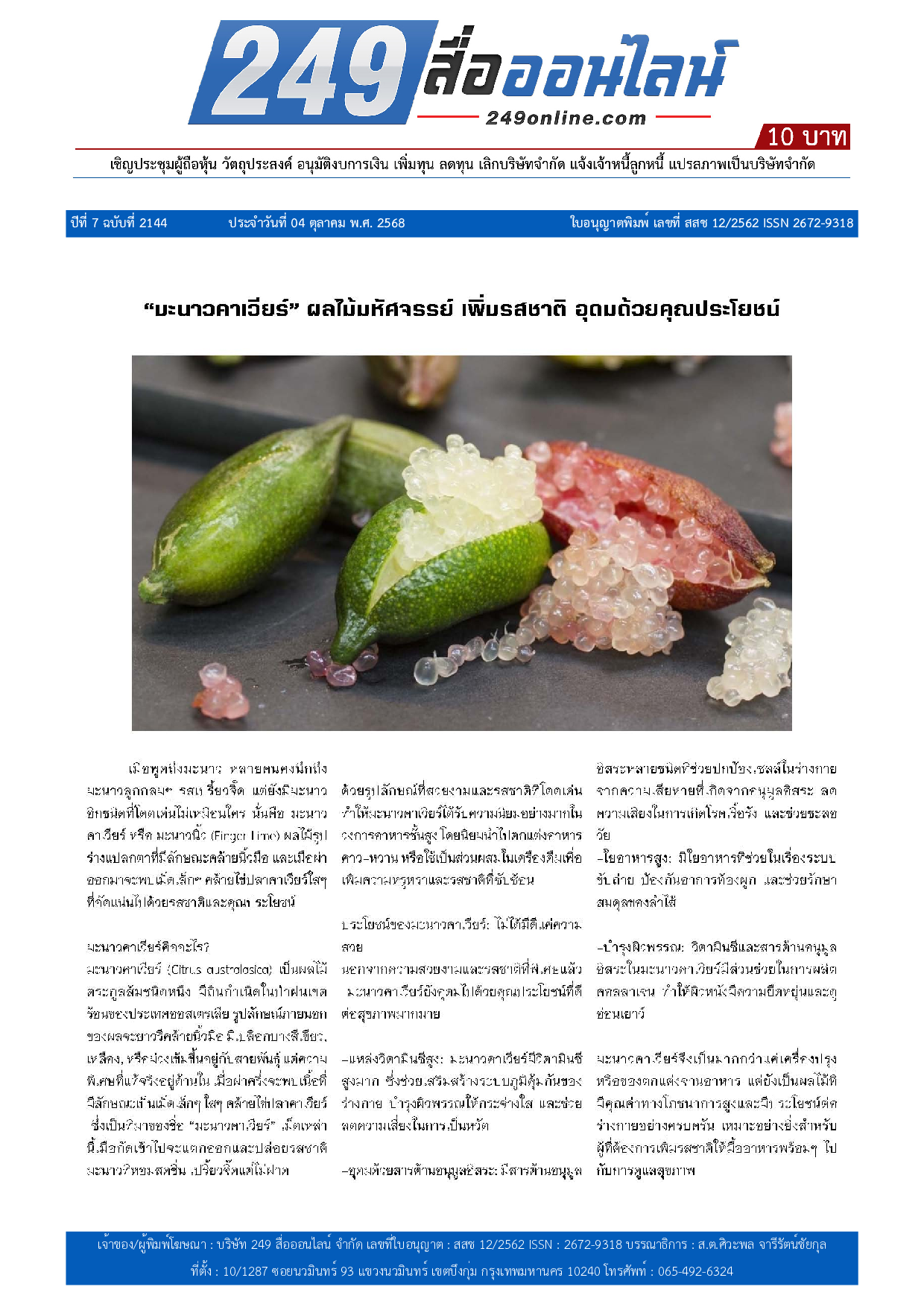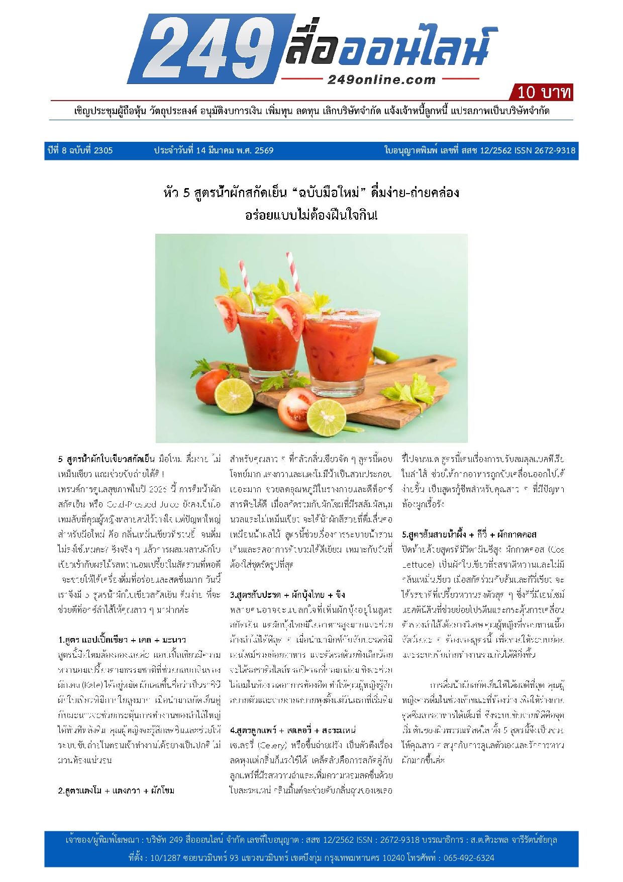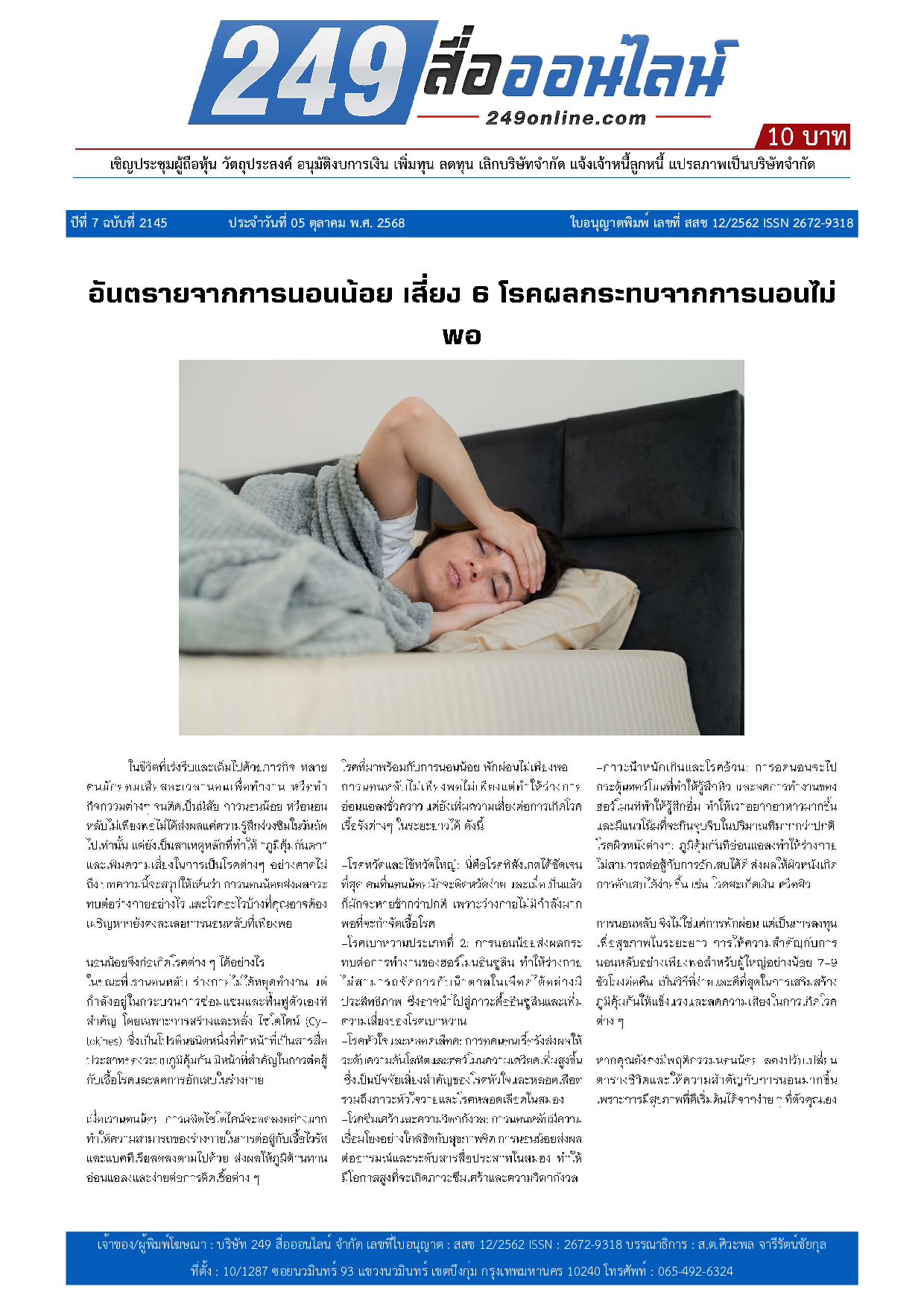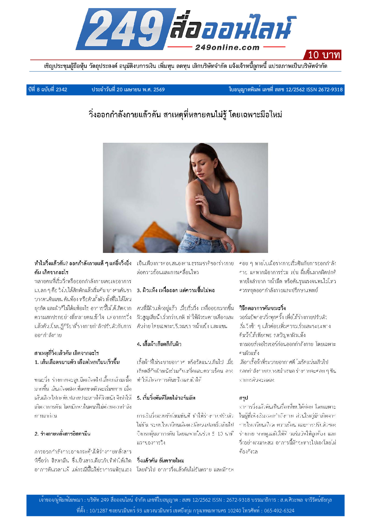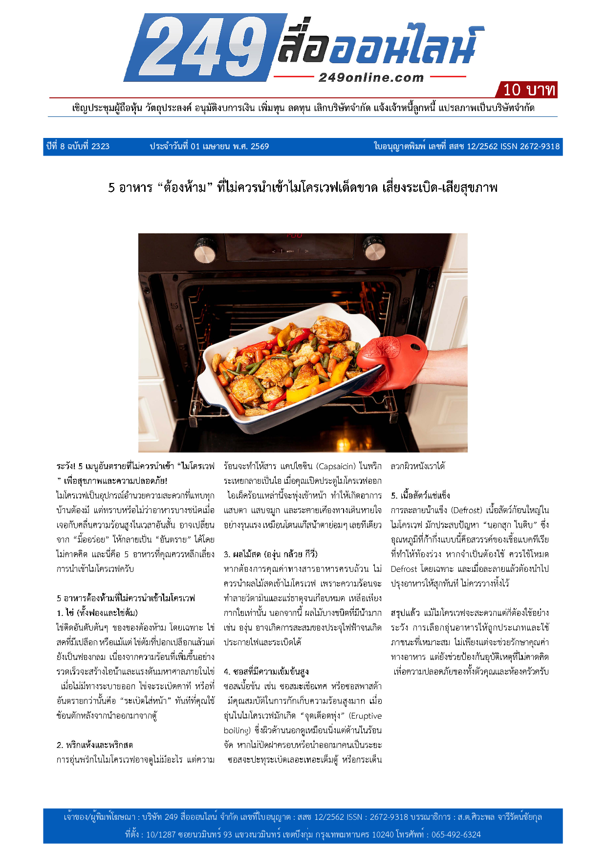หนังสือพิมพ์ 249 สื่อออนไลน์ ได้จดแจ้งการพิมพ์อย่างถูกต้อง และได้รับใบอนุญาตเลขที่ สสช 12/2562 ISSN 2672-9318