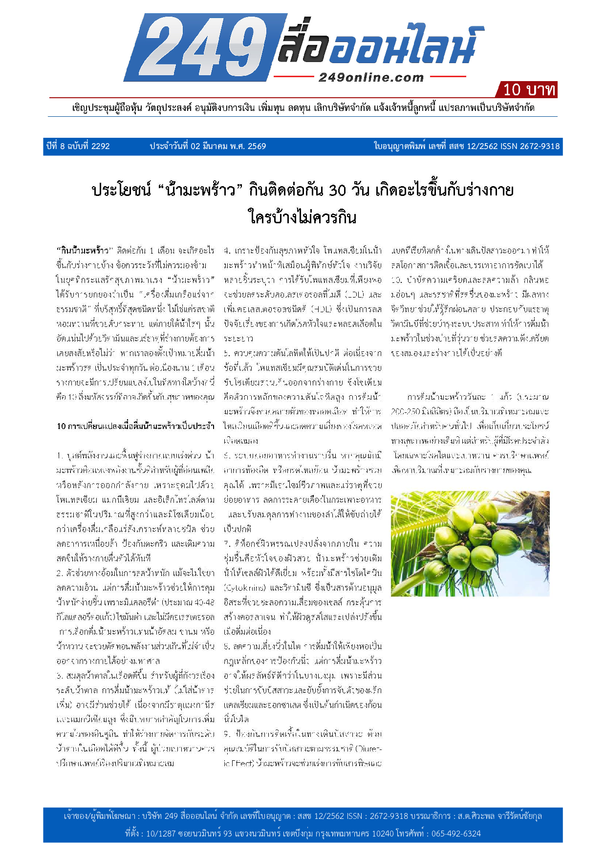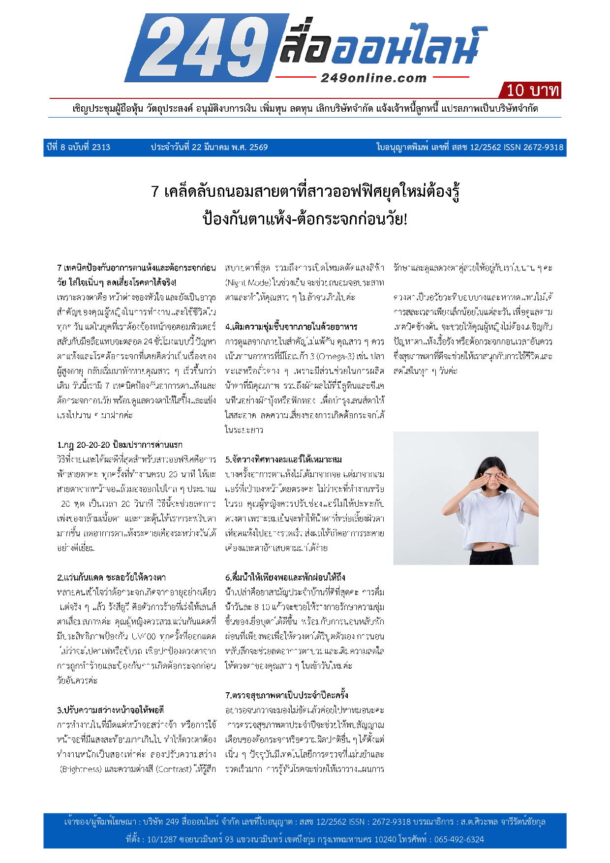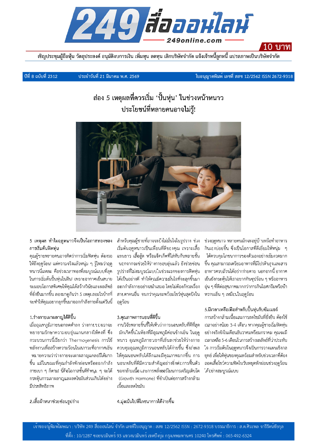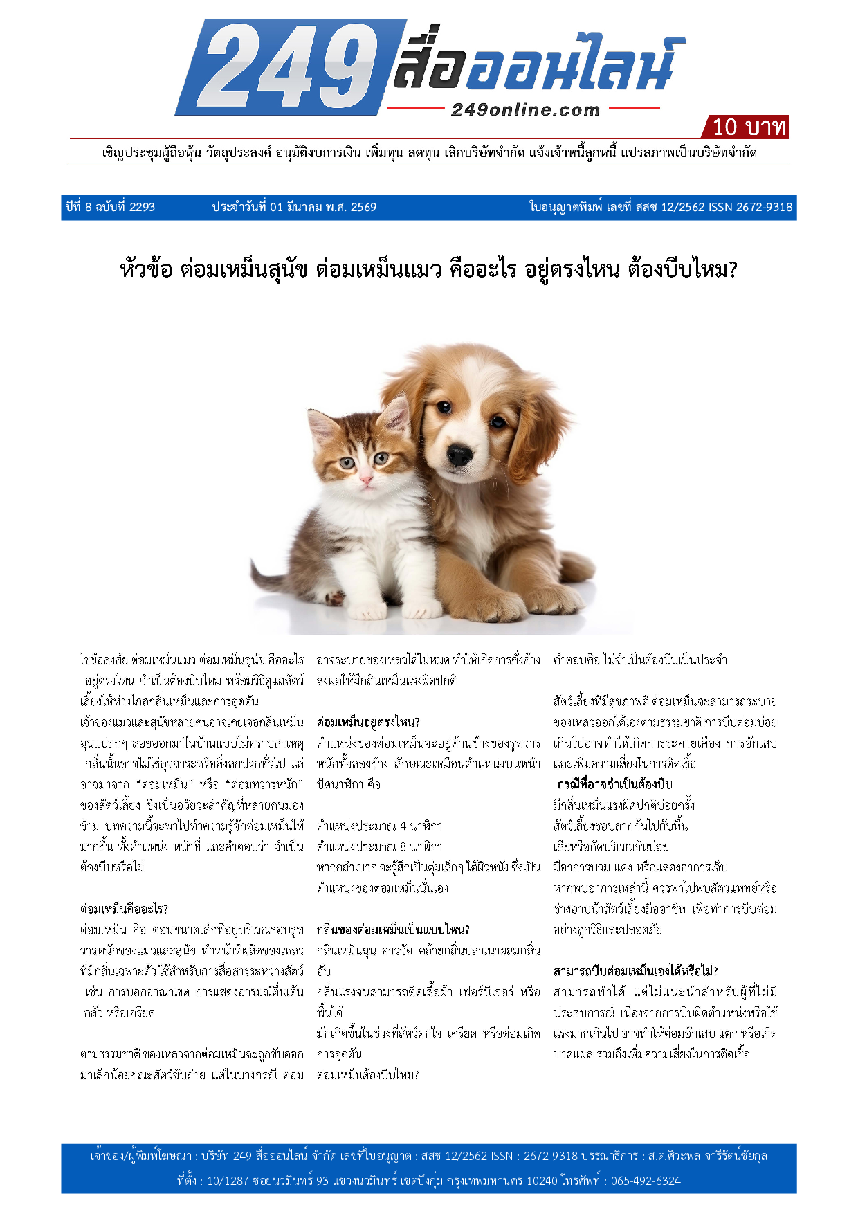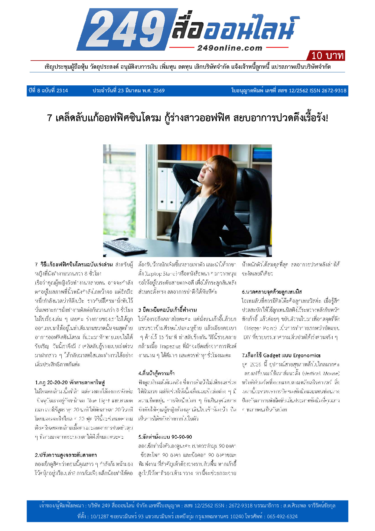 หนังสือพิมพ์ 249 สื่อออนไลน์ ได้จดแจ้งการพิมพ์อย่างถูกต้อง และได้รับใบอนุญาตเลขที่ สสช 12/2562 ISSN 2672-9318