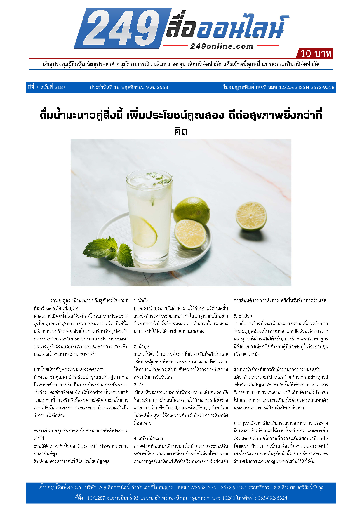 ฉบับวันที่ 16 พฤศจิกายน 2568